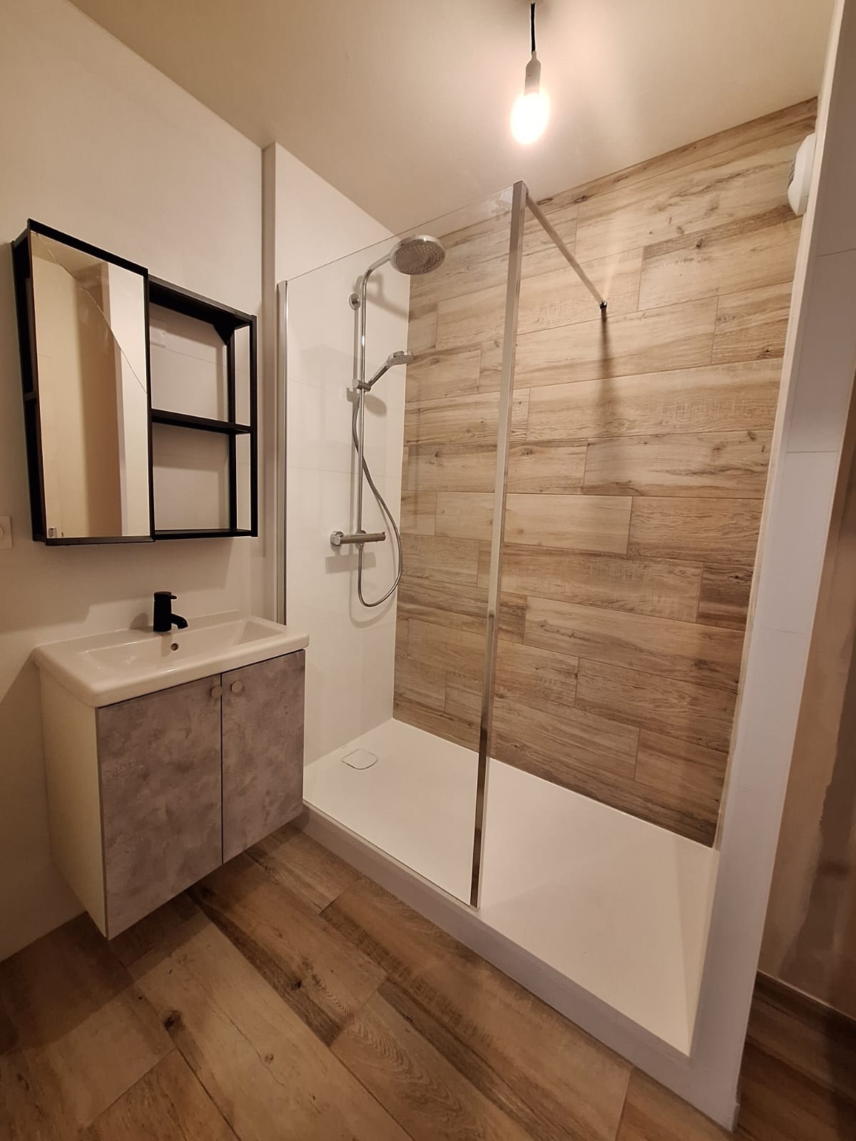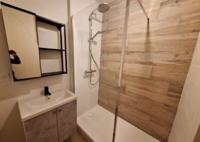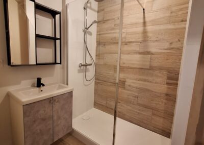 Nos équipes sont intervenues à Angers pour la rénovation complète d’une salle de bain. L’ancienne baignoire a été déposée afin de moderniser la salle d’eau et ainsi mettre en place une douche à syphon de sol. La nouvelle douche, équipée d’un receveur extra plat, d’une paroi vitrée, offre un espace pratique et moderne. Ce chantier illustre notre savoir faire pour les projets de rénovation de salle de bain complète.